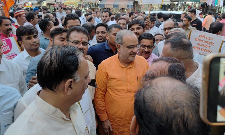 सहारनपुर। भारत सरकार द्वारा जीएसटी की दरों में की गई कमी को लेकर भाजपा प्रदेश अध्यक्ष भूपेंद्र चौधरी सोमवार शाम को सहारनपुर में श्रीराम चौक, नेहरू मार्केट पहुंचे वहां पर पहुंचकर प्रदेश अध्यक्ष ने जो एस टी की दरों में हई कटौती को लेकर व्यापारियों से संवाद किया। उन्होंने दुकान-दुकान जाकर व्यापारियों का हाल-चाल जाना और उन्हें सम्मानित भी किया।