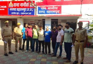 नानौता,  । नगर और ग्रामीण क्षेत्र में शांति व्यवस्था भंग करने वालों के खिलाफ थाना पुलिस ने बड़ी कार्रवाई की है। थाना अध्यक्ष धर्मेंद्र सिंह के नेतृत्व में पुलिस टीम ने आठ उपद्रवियों को गिरफ्तार कर न्यायालय में पेश किया।