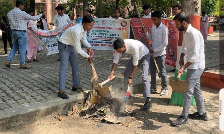 नानौता । नगर के राजकीय महाविद्यालय में स्वच्छ उत्सव थीम पर स्वच्छता ही सेवा अभियान के अंतर्गत छात्र एवं छात्राओं द्वारा साफ सफाई अभियान चलाया गया। कार्यक्रम से पूर्व राजकीय महाविद्यालय के प्राचार्य डॉक्टर परविंदर कुमार नें छात्र छात्राओं को संबोधित कहा कि देश के राष्ट्रीय पिता महात्मा गांधी स्वच्छता के सबसे बड़े पैरोकार थे उन्होंने ही देश भर में स्वच्छता संदेश दिया। कार्यक्रम अधिकारी डॉक्टर इंदु एवं डॉक्टर प्रमोद चौहान ने कहा कि महात्मा गांधी जहाँ अपने घर ओर आसपास साफ सफाई का ख़ास ख्याल रखते थे वहीँ अपने आसपास के लोगों को स्वच्छता बनाए रखने का संदेश देते थे। इस दौरान डॉक्टर मनीष कुमार, डॉक्टर गरिमा चौधरी डॉ राजेश कुमार डॉ कुलदीप सिंह,रीना राय, विकास चंद,सचिन खरे,मौजूद रहे