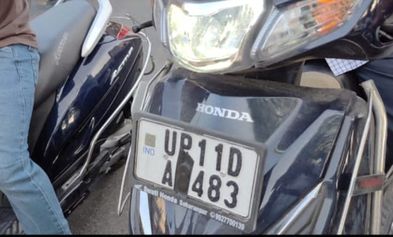सहारनपुर, । सहारनपुर ट्रैफिक पुलिस के चेकिंग अभियान के दौरान आज देहरादून चौक पर एक एक्टिवा स्कूटर पुलिस की नजर में आया, जिसकी नंबर प्लेट काली टेप से ढकी हुई थी। पुलिस ने जब चालक से कारण पूछा, तो वह कोई संतोषजनक जवाब नहीं दे पाया।