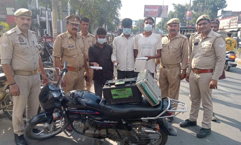 पुलिस ने इनके कब्जे से एक देशी तमंचा 315 बोर, एक खोखा कारतूस, एक मिस कारतूस, दो अवैध चाकू, चोरी की मोटरसाइकिल, एक इन्वर्टर और ट्रैक्टर की बैट्री बरामद की है।