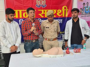 इस अवसर पर डॉ. संजीव मिगलानी ने पुलिसकर्मियों को सीपीआर (Cardio Pulmonary Resuscitation) की विस्तृत जानकारी दी और व्यावहारिक डेमो के माध्यम से बताया कि दुर्घटना स्थल पर घायलों को किस प्रकार त्वरित प्राथमिक उपचार देकर उनकी जान बचाई जा सकती है।