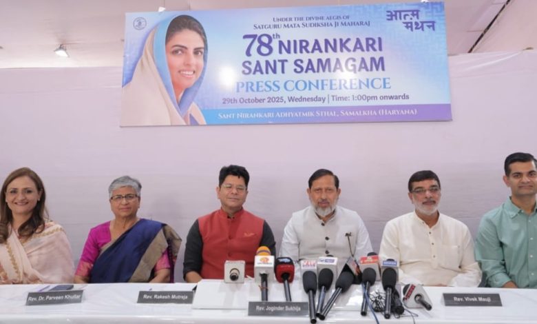 समालखा, (धर्मेन्द्र अनमोल)। संत निरंकारी मिशन के तत्वावधान में सतगुरु माता सुदीक्षा जी महाराज के पावन सान्निध्य में 78वां वार्षिक निरंकारी संत समागम 31 अक्तूबर से 3 नवम्बर तक समालखा (हरियाणा) में आयोजित किया जाएगा। इस बार समागम की प्रेरणा ‘आत्ममंथन से आत्मोन्नति की ओर’ विषय पर केंद्रित है, जो आत्मचिंतन, मानवता और समरसता की भावना को और गहराई से जगाने का संदेश देगा।