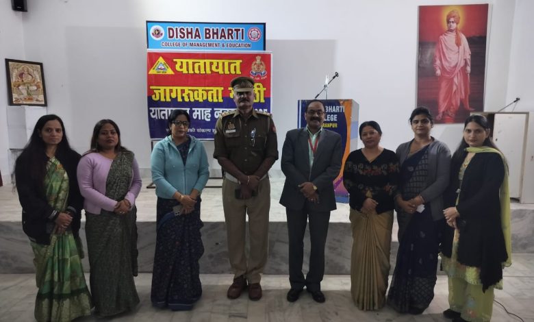 सहारनपुर। यातायात माह के अवसर पर बुधवार को सरस्वती विहार स्कूल एवं दिशा भारती कॉलेज में यातायात पुलिस द्वारा छात्र-छात्राओं को सड़क सुरक्षा और यातायात नियमों की जानकारी दी गई। कार्यक्रम वरिष्ठ पुलिस अधीक्षक सहारनपुर के निर्देशन में आयोजित किया गया जिसमें पुलिस अधिकारियों ने छात्रों को सड़क पर चलते समय सावधानी बरतने, हेलमेट और सीट बेल्ट के अनिवार्य उपयोग, ओवरस्पीडिंग से बचने तथा मोबाइल फोन का प्रयोग न करने जैसी महत्वपूर्ण बातें बताईं