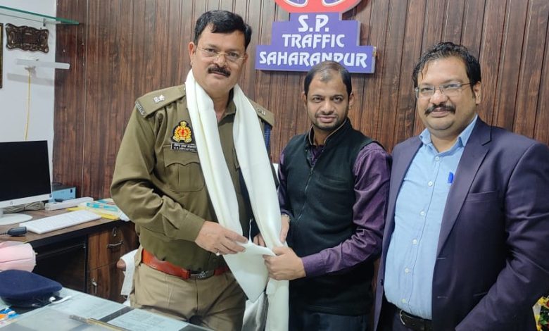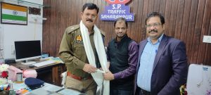 सहारनपुर। नव प्रयास जागृति उत्थान सेवा समिति एवं लिटिल एंजेल स्कूल के प्रधानाचार्य ने नवागंतुक एसपी ट्रैफिक शैलेंद्र श्रीवास्तव से शिष्टाचार भेंट कर उनको अंग वस्त्र पहनाकर सम्मानित किया तथा यातायात माह अभियान में हर संभव सहयोग का आश्वासन दिया।