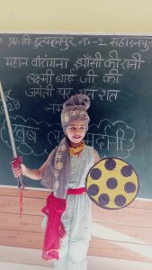 कार्यक्रम में छात्रा महिरा ने रानी लक्ष्मीबाई का रूप धारण किया तथा “खूब लड़ी मर्दानी” कविता का सुंदर प्रस्तुतीकरण किया।