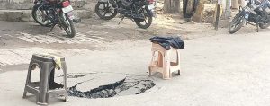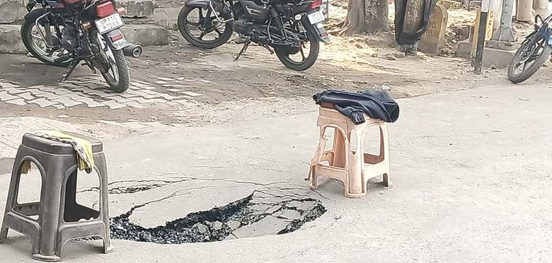 कोर्ट रोड पर सड़क धंसने से यातायात व्यवस्था चरमराई