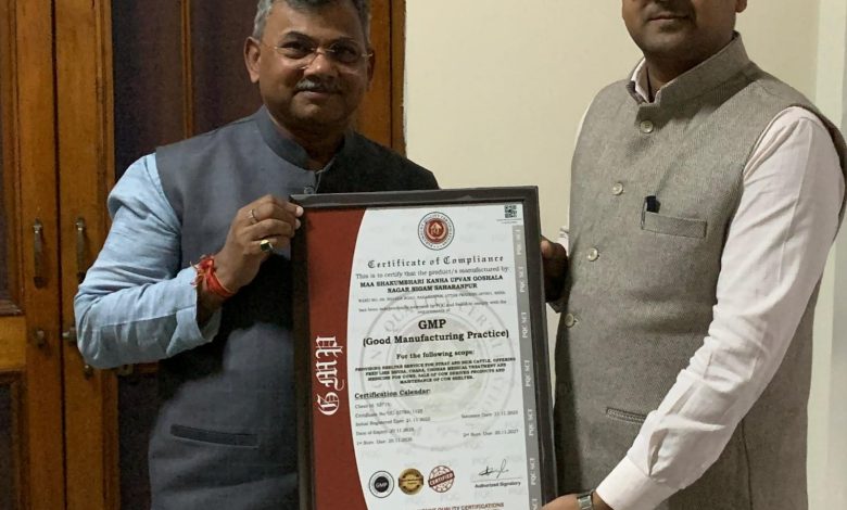 कान्हा गौशाला को वर्ल्ड रिकॉर्ड के बाद अब ‘जीएमपी सर्टिफिकेट‘ भी