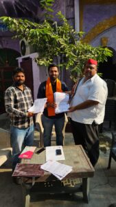 सहारनपुर। स्नातक (ग्रेजुएट) निर्वाचन क्षेत्र मेरठ–सहारनपुर खंड में वोटर सूची पुनरीक्षण अभियान तेजी पकड़ रहा है। समाजवादी पार्टी के प्रत्याशी अधिवक्ता परमिंदर भाटी के पुत्र ऋषभ भाटी को आज वरिष्ठ सपा नेता एवं पार्षद अभिषेक टिंकू अरोड़ा ने अपने निवास पर बड़ी संख्या में स्नातक वोट फॉर्म सौंपे। इस अवसर पर टिंकू अरोड़ा ने उन्हें सिरोपा पहनाकर सम्मानित किया और गुरु साहिब का चित्र भेंट किया।