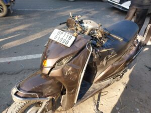 टेंपो और ट्रैक्टर-ट्रॉली की चपेट में आने से स्कूटी सवार महिला की मौत ,