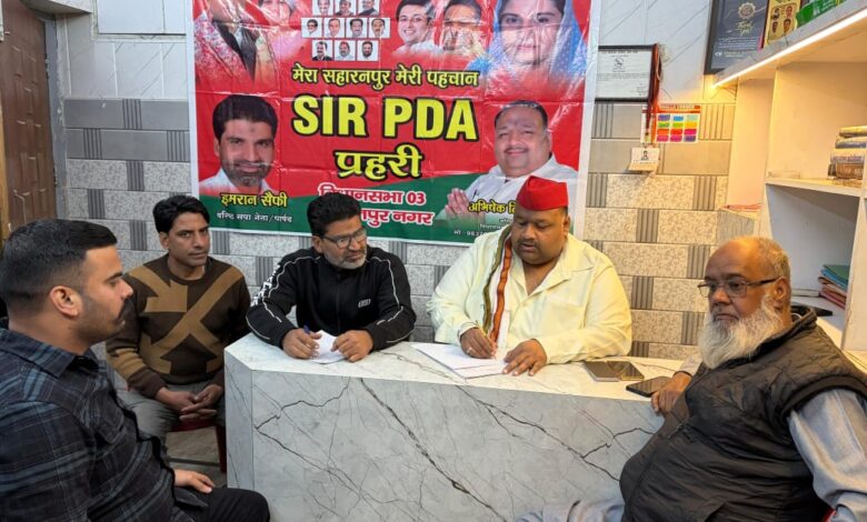 सहारनपुर। वार्ड 68 के पार्षद हाजी इमरान सैफी के कार्यालय पर वरिष्ठ सपा नेता इमरान सैफी की पहल पर SIR-PDA प्रहरी कैंप आयोजित किया गया। कैंप में अली अग्रहाण सहित आसपास के क्षेत्रों से आए लोगों के वोट से संबंधित SIR फॉर्म भरे गए और वर्ष 2003 की मतदाता सूची से जुड़ी सभी आवश्यक जानकारी उपलब्ध कराई गई।