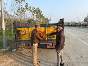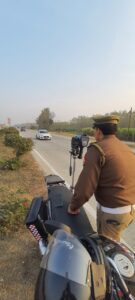 हाईवे पर विशेष अभियान: तेज रफ्तार और नियम उल्लंघन पर 110 वाहन चालान, भारी वाहनों पर लगाई रिफ्लेक्टर टेप