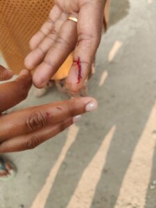 मां पुत्री के हाथों पर कुत्ते के कांटे के जख्म
