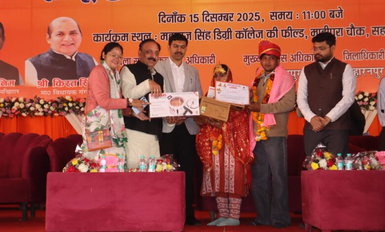 सहारनपुर। मुख्यमंत्री सामूहिक विवाह योजना के अंतर्गत सोमवार को जनपद में भव्य आयोजन के साथ 254 जोड़ों का विवाह पारंपरिक रीति-रिवाजों के अनुसार संपन्न कराया गया। यह आयोजन महाराज सिंह डिग्री कॉलेज फील्ड, जनता रोड, सहारनपुर में आयोजित किया गया, जिसमें जनप्रतिनिधियों एवं प्रशासनिक अधिकारियों की गरिमामयी उपस्थिति रही।