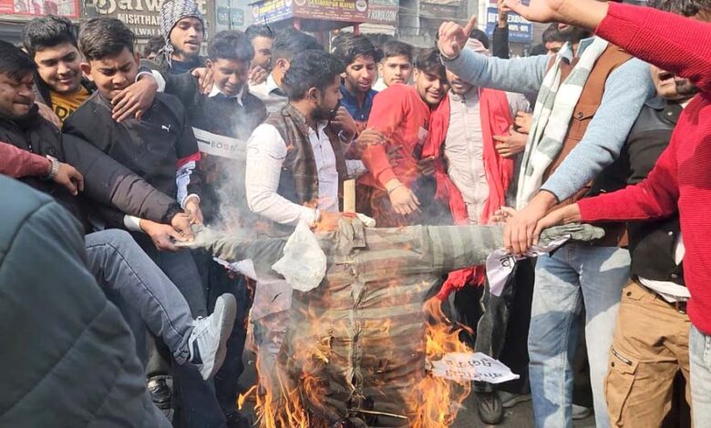 बांग्लादेश में हिंदुओं पर हो रहें अत्याचार के विरोध में हिन्दू संगठनों ने किया प्रदर्शन, फंूका पुतला