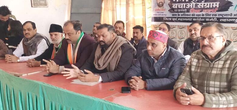सहारनपुर। कांग्रेस के जिलाध्यक्ष संदीप राणा ने केंद्र सरकार पर महात्मा गांधी की विचारधारा को समाप्त करने का आरोप लगाते हुए कहा कि मनरेगा योजना का नाम किसी भी सूरत में बदलने नहीं दिया जाएगा। उन्होंने स्पष्ट किया कि यदि केंद्र सरकार ने योजना का नाम बदलने का प्रयास किया तो कांग्रेस हर स्तर पर विरोध करेगी और 100 दिन तक आंदोलन चलाया जाएगा। कांग्रेस जिलाध्यक्ष संदीप राणा एवं महानगर अध्यक्ष मनीष त्यागी ने आज महानगर कांग्रेस कार्यालय पर पत्रकारों से वार्ता के दौरान भाजपा पर धर्म और जाति के नाम पर समाज को बांटने का आरोप लगाया। उन्होंने कहा कि जी राम जी योजना के नाम पर राष्ट्रपिता महात्मा गांधी की विचारधारा को समाप्त करने की कोशिश की जा रही है, जबकि पूरी दुनिया गांधीजी के सिद्धांतों को स्वीकार करती है। संदीप राणा ने कहा कि भाजपा को गांधी नाम से आपत्ति है और इसी कारण मनरेगा का नाम बदलने की साजिश रची जा रही है। उन्होंने केंद्र सरकार द्वारा मनरेगा में हिस्सेदारी घटाने पर भी नाराजगी जताई और कहा कि पहले केंद्र सरकार 80 प्रतिशत और राज्य सरकार 20 प्रतिशत खर्च वहन करती थी, जिसे बदलकर अब 60 प्रतिशत केंद्र और 40 प्रतिशत राज्य कर दिया गया है, जो गरीबों के साथ अन्याय है। उन्होंने बांग्लादेश क्रिकेट टीम के विरोध पर भी प्रतिक्रिया देते हुए कहा कि खेल को धर्म और जाति से जोड़ना गलत है। जिस प्रकार हिंदू संगठनों को आगे कर विरोध कराया जा रहा है, वह दुर्भाग्यपूर्ण है। इस अवसर पर पूर्व जिला अध्यक्ष मेहरबान आलम, युवा जिला अध्यक्ष गौरव वर्मा, कांग्रेस सेवा दल के जिला अध्यक्ष इमरान कुरैशी, प्रदेश सचिव प्रवीण चैधरी, जिला प्रवक्ता गणेश शर्मा, जिला उपाध्यक्ष एवं पूर्व पार्षद सरदार चंद्रजीत सिंह निक्कू, हरिओम मिश्रा और संदीप वर्मा सहित अन्य कांग्रेस नेता मौजूद रहे।