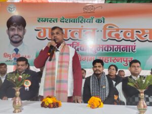 नगर आयुक्त शिपू गिरि ने उपस्थित लोगों को गणतंत्र दिवस की शुभकामनाएं देते हुए कहा कि राष्ट्रीय पर्वों को पूरे उत्साह और एकता के साथ मनाया जाना चाहिए। उन्होंने वरिष्ठ पार्षद मंसूर बदर एवं अन्य पार्षदों से समन्वय कर महापौर डॉ. अजय कुमार सिंह के मार्गदर्शन में सहारनपुर को विकास के नए आयामों तक पहुंचाने की बात कही। साथ ही उन्होंने यंग तिरंगा क्लब द्वारा किए जा रहे सामाजिक व राष्ट्रीय कार्यक्रमों की प्रशंसा की।