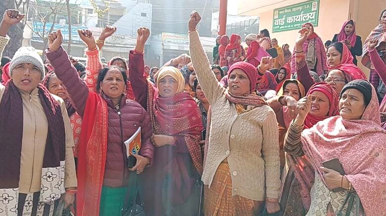सहारनपुर। आंगनबाड़ी संयुक्त मोर्चा एवं अखिल भारतीय आंगनबाड़ी कर्मचारी महासभा के बैनर तले जनपद की आंगनबाड़ी कार्यकर्ताओं एवं सहायिकाओं ने अपनी लंबित एवं न्यायोचित मांगों को लेकर जिला मुख्यालय पर नारेबाजी कर प्रदर्शन किया तथा मुख्यमंत्री को सम्बोधित ज्ञापन जिला प्रशासन को सौंपकर समस्याओं के समाधान की मांग की। आंगनबाड़ी कार्यकत्रियां एवं कर्मचारी आज पूर्व निर्धारित कार्यक्रम के तहत हकीकत नगर स्थित धरना स्थल पर एकत्रित हुई तथा नारेबाजी के बीच जोरदार प्रदर्शन किया। संयुक्त मोर्चा की सचिव प्रतिभा त्यागी एवं जिलाध्यक्ष संजुली शर्मा के नेतृत्व में जुलूस के रूप में नारेबाजी करती हुई जिलाधिकारी कार्यालय पहुंची जहां उन्होंने मुख्यमंत्री को सम्बोधित ज्ञापन प्रशासनिक अधिकारी को सौंपा। इस अवसर पर संगठन की सचिव प्रतिभा त्यागी ने कहा कि आंगनबाड़ी कार्यकत्रियां विगत 50 सालों से महिला एवं बाल विकास विभाग में समर्पित भाव से काम कर रही हैं जिसके बदले में उन्हें केवल 6 हजार रूपए मानदेय मिल रहा है जो नाकाफी है। उन्होंने कहा कि अब उन्होंने मानदेय के स्थान पर 24 हजार रूपए प्रतिमाह वेतन दिया जाना चाहिए। उन्होंने सरकार से मांग की कि यदि उनकी मांगें नहीं मानी गई तो आगामी 8 वे कार्य बहिष्कार कर कलमबंद हड़ताल कर देगी। जिलाध्यक्ष संजुली शर्मा ने कहा कि आंगनबाड़ी कार्यकत्रियों को पूर्णकालिक सरकारी कर्मचारी का दर्जा देते हुए उन्हें वेतनमान, भविष्यनिधि, पेंशन, गे्रच्युटी, महंगाई भत्ता आदि दिया जानए तथा सेवानिवृत्ति की आयु 65 वर्ष की जानी चाहिए। ज्ञापन देने वालों में सचिव प्रतिभा त्यागी एवं जिलाध्यक्ष संजुली शर्मा के अलावा भावना त्यागी, सुंदरी देवी, सरिता, लोकेश, ममता राणा, प्रीती त्यागी, मंजू, संतलेश, वर्षा, रेखा सहित भारी संख्या में आंगनबाड़ी कार्यकत्रियां मौजूद रही। अखिल भारतीय आंगनबाड़ी कर्मचारी महासभा महासभा की जिलाध्यक्ष पूनम शर्मा एवं संरक्षक नरेंद्र दत्त शर्मा के नेतृत्व में भी ज्ञापन सौंपकर मांगों का अविलम्ब समाधान किए जाने की मांग की गई। उन्होंने कहा कि आंगनबाड़ी कार्यकर्ता एवं सहायिकाएं विगत कई दशकों से महिला एवं बाल विकास विभाग की रीढ़ बनकर पोषण, स्वास्थ्य, शिक्षा, टीकाकरण एवं मातृ-शिशु देखभाल जैसी महत्वपूर्ण योजनाओं का सफल संचालन कर रही हैं, बावजूद इसके आज तक उन्हें पूर्णकालिक सरकारी कर्मचारी का दर्जा एवं वैधानिक सुविधाएं प्राप्त नहीं हुई हैं। महासभा ने चेतावनी दी कि यदि अप्रैल 2026 तक मांगों का समाधान नहीं किया गया तो पोषण ट्रैकर सहित समस्त ऑनलाइन कार्य पूर्णतः बंद कर दिए जाएंगे, जिसकी जिम्मेदारी शासन-प्रशासन की होगी। इस दौरान कमला, रोना देवी, लता, प्रनम शर्म