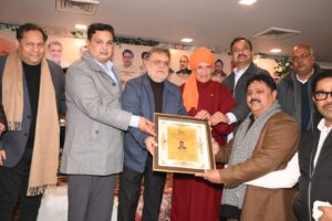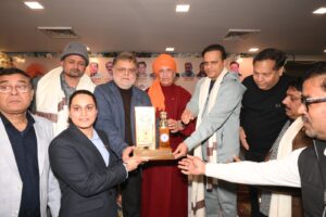 सहारनपुर। योग गुरु पदम श्री भारत भूषण ने कहा कि समाज को दिशा देने के लिए संकल्पित लक्ष्य निर्धारित कर पत्रकारिता होनी चाहिए, ताकि पत्रकार राष्ट्र के एक सजग प्रहरी होने की भूमिका का दायित्व निभा सके। इस अवसर पर समाज की विभिन्न विभूतियां को सम्मानित किया गया और सूफियाना अंदाज में डॉक्टर अमन सूफी अपनी प्रस्तुतियों के माध्यम से श्रोताओं को अपने आवाज के जादू में बांधे रखा।