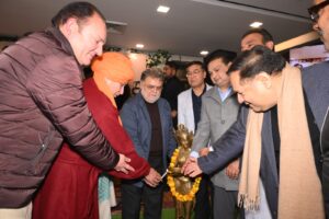 जीपीओ रोड स्थित एक होटल की सभागार में डिस्ट्रिक्ट प्रेस क्लब द्वारा विशेष उपलब्धि हासिल करने वाली विभूतियां को सम्मानित करने के लिए आयोजित सम्मान समारोह का शुभारंभ मुख्य अतिथि योग गुरु पदम श्री भारत भूषण, मां शाकंभरी विश्वविद्यालय की उपकुलपति विमला वाई, डीआईजी /वरिष्ठ पुलिस अधीक्षक आशीष तिवारी, एनआरआई अजय गुप्ता ,डीपीसी के चेयरमैन जावेद साबरी, जिलाध्यक्ष सुरेंद्र चौहान ने संयुक्त रूप से दीप प्रज्वलित कर किया।